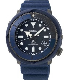 جنس بدنه ساعت ترکیبی از استیل ضدزنگ با پوشش سخت و پلاستیک مقاوم است که قطر 46.7 میلیمتر و ضخامت 12.6 میلیمتر دارد. بند سیلیکونی آبی رنگ آن با عرض 22 میلیمتر، راحتی و استحکام را در استفاده روزمره و شرایط غواصی فراهم میکند. شیشه Hardlex مقاوم در برابر خط و خش، صفحه ساعت را محافظت میکند.