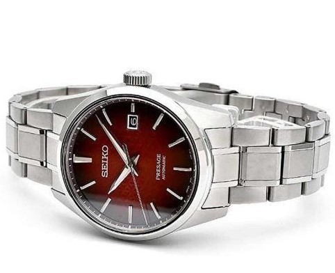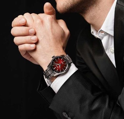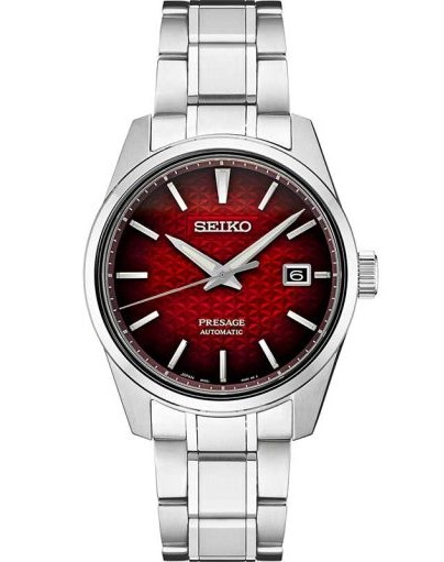 طراحی و ساختار: بدنه ساعت از استیل ضدزنگ با پوشش Super Hard ساخته شده که مقاومت بالایی در برابر خراشها دارد. قطر بدنه 39.3 میلیمتر و ضخامت آن 11.1 میلیمتر است که ابعادی متناسب برای مچ دستهای متوسط ارائه میدهد. صفحه قرمز رنگ ساعت با الگوی «Asanoha» (برگ کنف) طراحی شده که نماد رشد و سلامت در فرهنگ ژاپنی است. شیشه ساعت از یاقوت کبود با پوشش ضد بازتاب نور ساخته شده که وضوح دید را در شرایط نوری مختلف بهبود میبخشد.