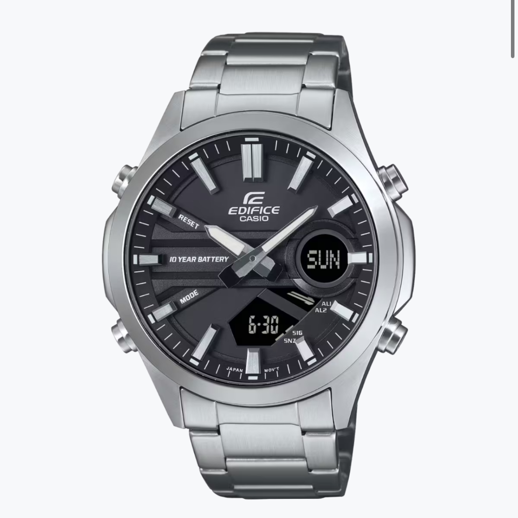 خودتان را آزاد کنید تا روی زندگی تمرکز کنید. ساعت ترکیبی آنالوگ-دیجیتال EFV-C120 را با باتری 10 ساله تهیه کنید که تا مدت ها نگران آن نباشید. EFV-C120 با تمام مزایای ساعت ترکیبی آنالوگ-دیجیتال و عمر باتری طولانی، اما در طراحی جمع و جورتر و ساده تر، از جایی که EFV-C110 متوقف شد، کار می کند. شما از تنوع زیادی از عملکردها، از جمله زمان جهانی، کرونومتر، زنگ هشدار، تایمر شمارش معکوس و مقاومت در برابر آب تا 100 متر لذت خواهید برد.