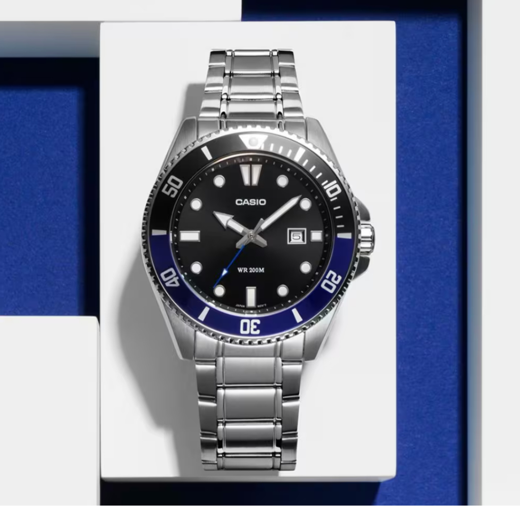 سبک آنالوگ تمام فلزی خود را مستقیماً به آب ببرید. این ساعت با مقاومت در برابر آب تا عمق 200 متر، قاب چرخشی یک طرفه و قاب پشتی قفل دار، ساعتی آماده برای هر ورزش اقیانوسی یا فعالیت های دریایی است. طراحی اسپورت و در عین حال کلاسیک آن همچنین دارای یک صفحه نمایش تاریخ است که کاربرد عملی را به سبک مد روز می آورد