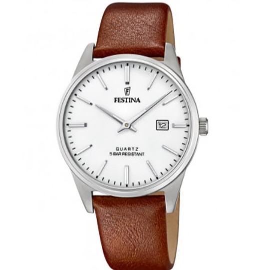 ترکیب «بند چرمی قهوهای + بدنه نقرهای + صفحه سفید (یا نقرهای)» دارد — پس برای استایل رسمی، محل کار یا لباسهای روزمره شیک انتخاب خوبی است.