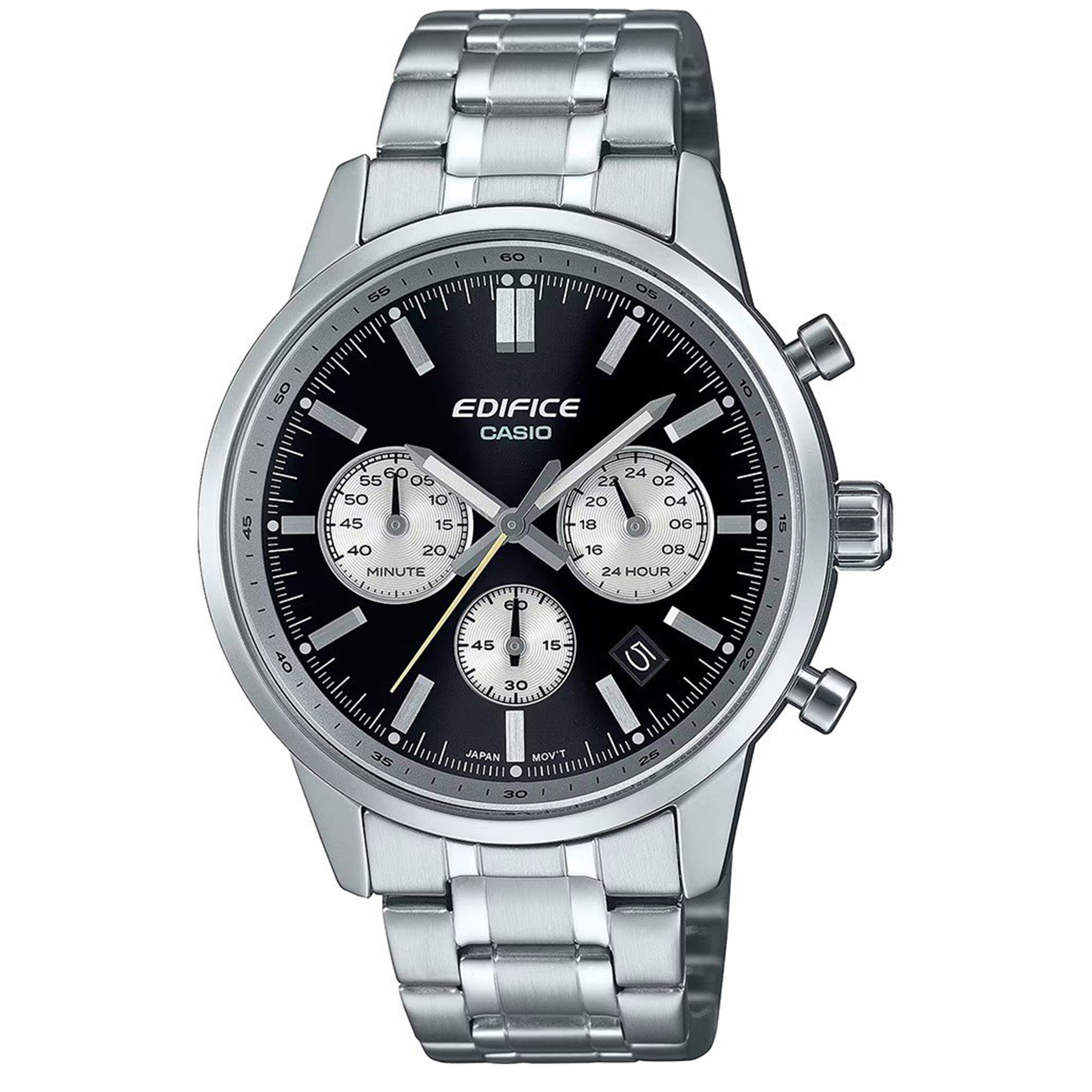 ساعت Casio Edifice EFR‑575D‑1ADF یکی از مدلهای کلاسیکتر سری Edifice است که طراحی اسپرت و کاربردی را با امکانات مناسب ترکیب میکند.از نظر مشخصات ظاهری، این ساعت دارای پوستهای از استیل ضدزنگ، بند فلزی، و شیشهای خمیده یا محدب است که ظاهری شبیه به داشبورد خودروهای کلاسیک به آن میبخشد.