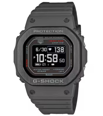 ساعت DW‑H5600MB‑8 از سری G‑SQUAD 5600 است که با ترکیبی از طراحی کلاسیک جیشاک و امکانات جدید برای دنبال کردن فعالیتهای ورزشی عرضه شده است.قاب و بند آن با استفاده از رزین زیستپایه (bio‑based resin) ساخته شدهاند تا اثر زیستمحیطی کاهش یابد.فریم فلزی با پوشش آیونیک سیاه روی ظاهر خاکستری این مدل جلوهای مدرن و لوکس داده است.