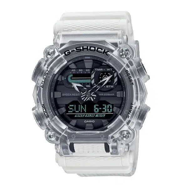 ساعت کاسیو GA‑900SKL‑7ADR یکی از مدلهای سری G‑SHOCK با طراحی مدرن و رنگبندی جذاب است که در خانواده «Sound Wave» معرفی شده است.این مدل ترکیبی از المانهای سخت و کاربردی جیشاک با جلوهای نیمهشفاف در بدنه و بند دارد که ظاهری متفاوت و چشمگیر به آن میدهد.