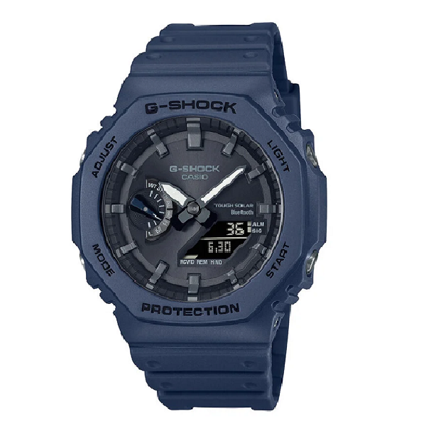 ساعت GA‑B2100‑2ADR از فناوری Tough Solar بهره میبرد، یعنی انرژی مورد نیازش را از نور خورشیدی تأمین میکند.