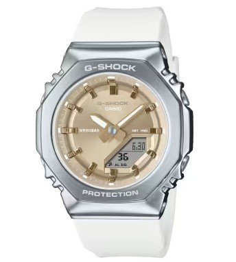 ساعت جیشاک GM-S2110-7A9DR از سری G-SHOCK کاسیو، مدل زنانهای است که ترکیبی از طراحی مدرن و عملکرد مقاوم را ارائه میدهد. این ساعت با بدنهای از رزین و استیل ضدزنگ، در ابعاد 40.5 میلیمتر قطر و 11 میلیمتر ضخامت طراحی شده است. وزن سبک 56 گرم آن باعث راحتی در استفاده روزمره میشود و بند سفید آن با رنگ نقرهای قاب هماهنگ است.
